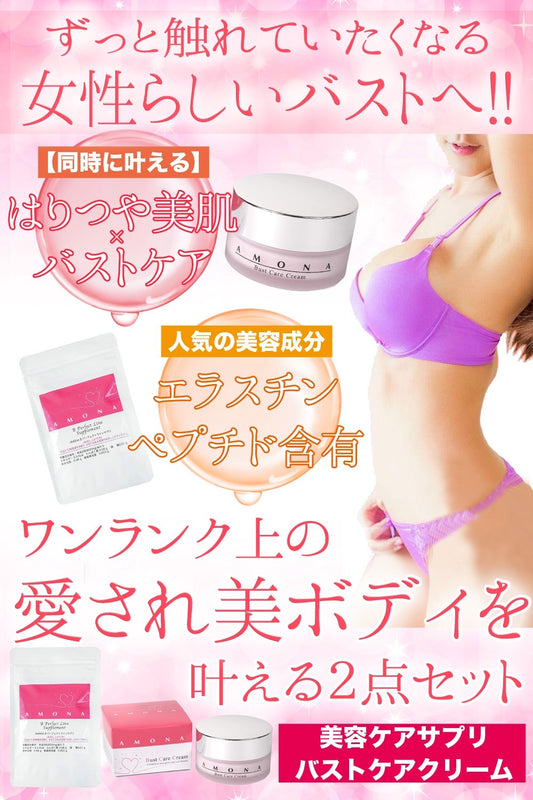 AMONA バストケアサプリメント エラスチン[375000mg配合] 濃縮プラセンタ 60粒