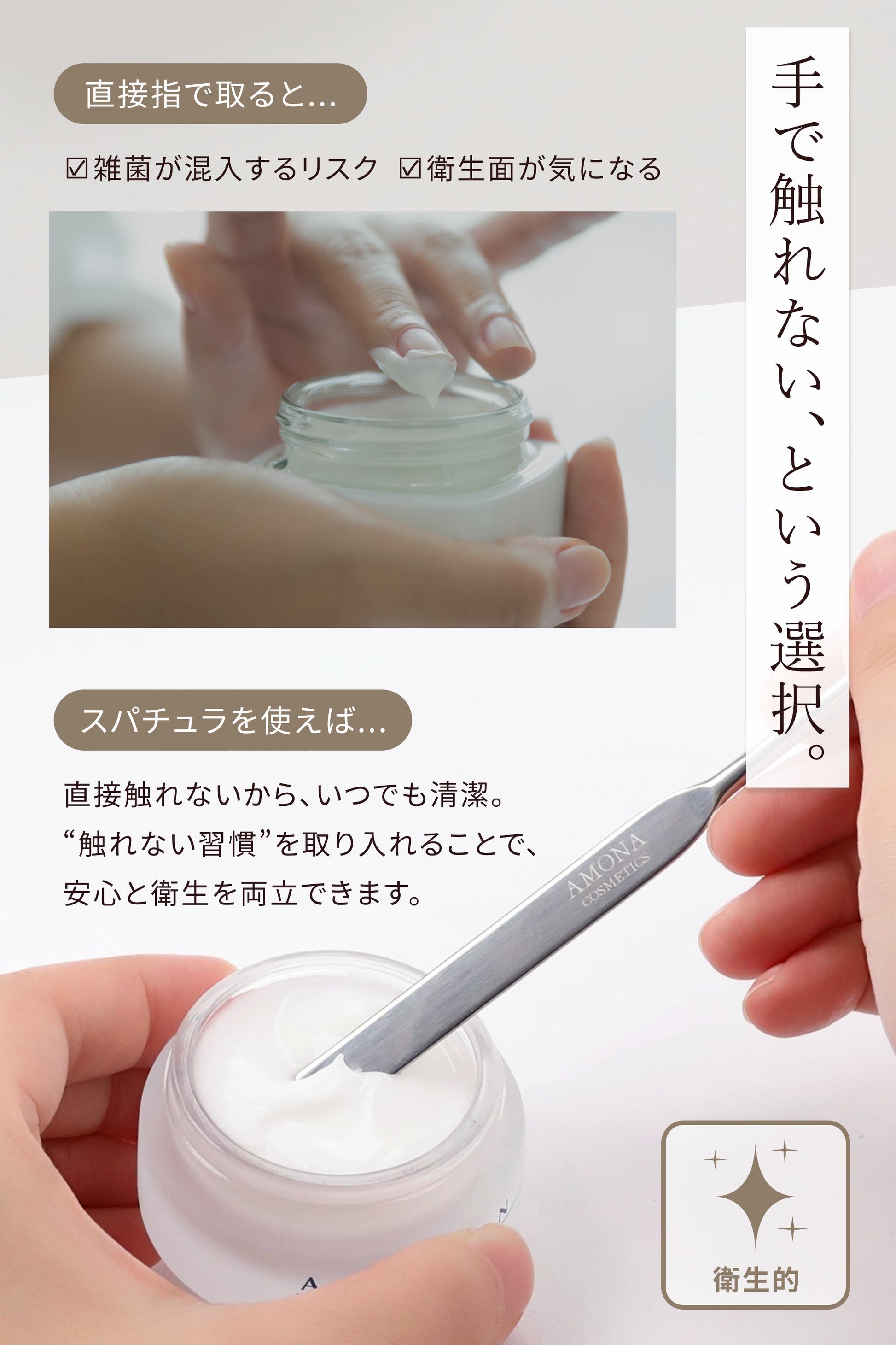 肌に触れるアイテムだからこそ、品質に妥協なし。シリーズ累計10万個突破のAMONAが、美容皮膚科医の監修のもと設計したスパチュラです。日本発ブランドとして、毎日のスキンケアやクリーム使用をより快適に。