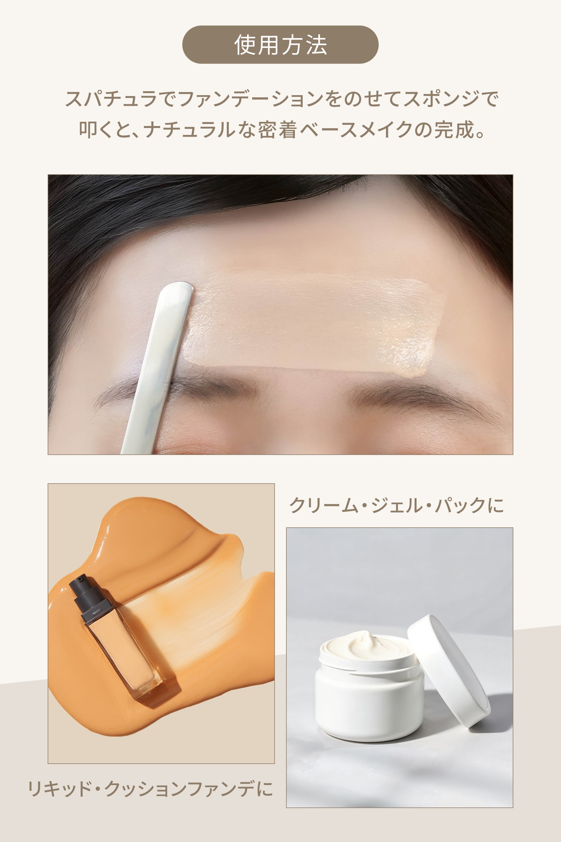 スキンケアやメイク時のファンデーションやクリーム・バームを手で触れずにすくうことで、雑菌混入や酸化を防ぎ、化粧品をより衛生的に使えるツールです。